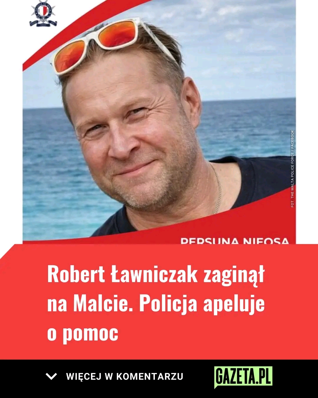 Robert Ławniczak po raz ostatni był widziany w poniedziałek 26 stycznia w miejscowości Xaghra na wyspie Gozo. Maltańska policja opublikowała zdjęcie 57-latka. “Jeśli posiadasz jakiekolwiek informacje na temat tej osoby, prosimy o kontakt z nami za pośrednictwem wiadomości prywatnej lub kontakt z Komendą Główną Policji, nawet anonimowo, pod numerem 21 224001/119 albo z najbliższym komisariatem” – napisano.