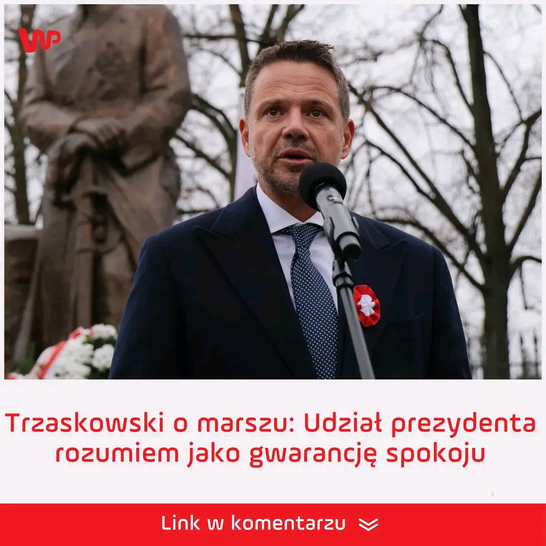 Jak dodał, obecność prezydenta Karola Nawrockiego na tym wydarzeniu rozumie jako gwarancję tego, że ten marsz będzie się odbywał w sposób spokojny, bez łamania prawa i bez haseł, które łamią polskie prawo.
