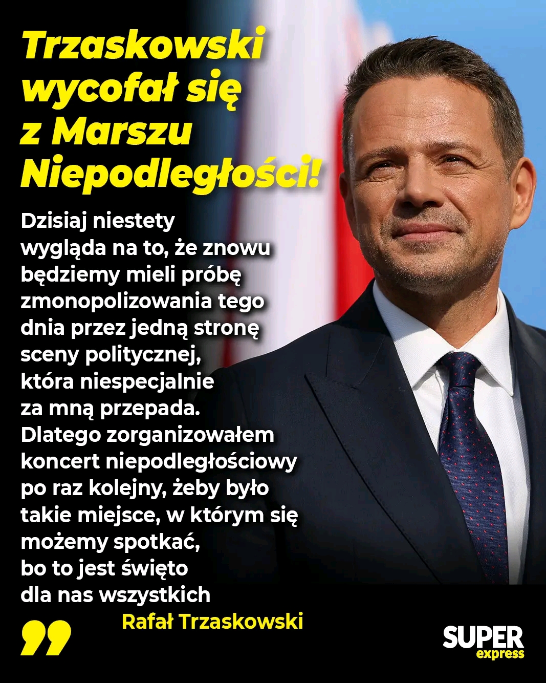 Rafał Trzaskowski podczas kampanii wyborczej zadeklarował, że pójdzie w tegorocznym Marszu Niepodległości. Dziś jednak w Polsat News stwierdził, że nie weźmie w nim udziału… Zdziwieni?” – napisano ironicznie.