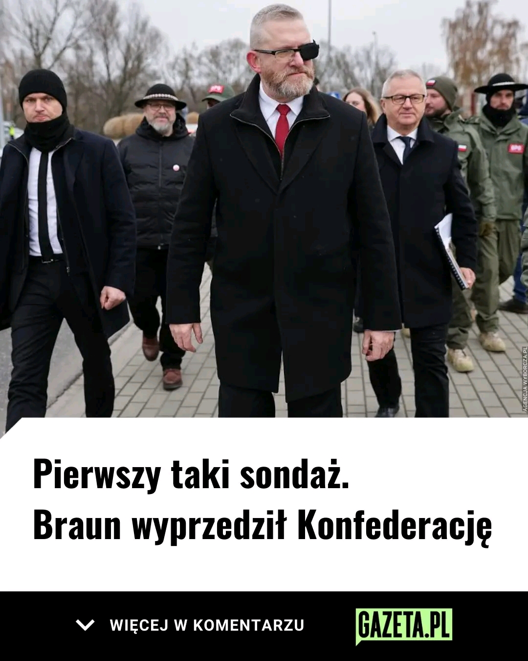 W najnowszym sondażu poparcia dla partii politycznych Konfederacja Korony Polskiej Grzegorza Brauna wyprzedziła Konfederację. Tym samym ugrupowanie Krzysztofa Bosaka i Sławomira Mentzena spadło z podium.