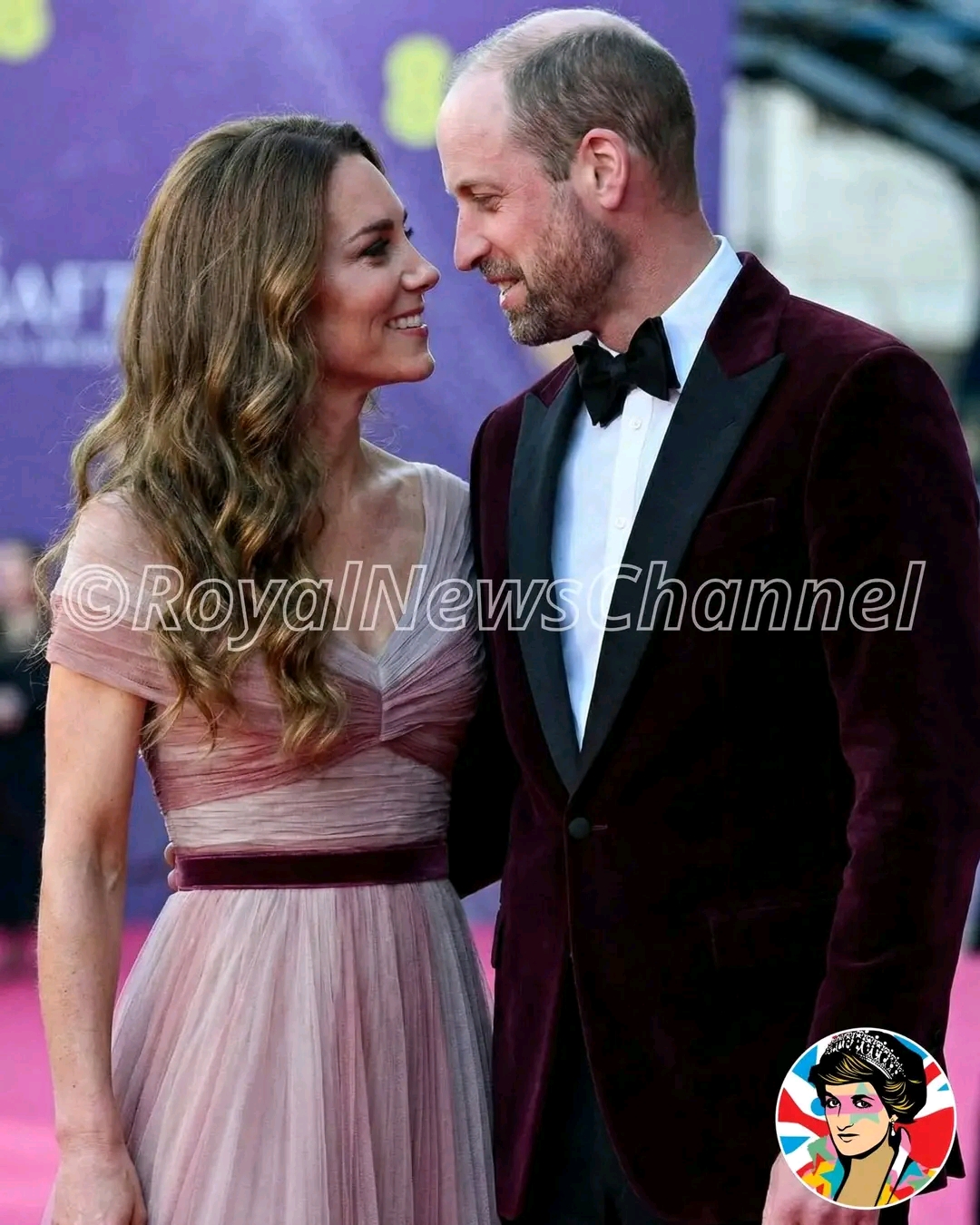 ✨ Dressed in soft blush with delicate velvet detail, the Princess of Wales looked timeless. The Prince matched her in deep maroon, creating a refined harmony that felt both modern and symbolic, reflecting unity, stability, and continuity.