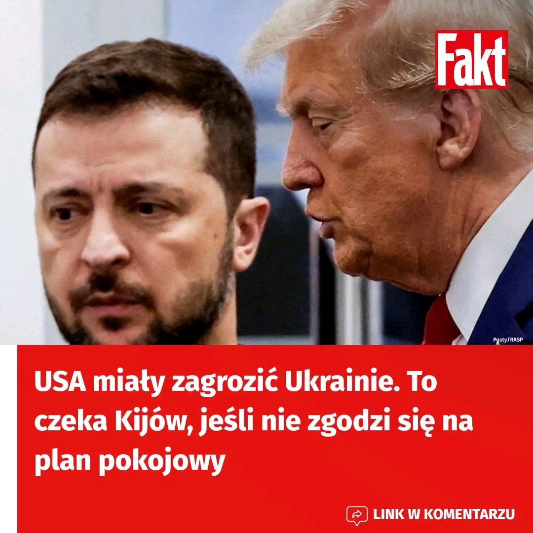 28-punktowy plan porozumienia pokojowego dla Ukrainy wywołał lawinę komentarzy. Kijów potwierdził, że otrzymał od USA propozycję rozwiązań, natomiast Kreml zapewnia, że nie dostał planów, na temat których toczy się dyskusja. Premier Donald Tusk zareagował na jeden z zapisów dotyczący Polski. “Nic o nas bez nas” — grzmi szef rządu. Tymczasem, jak donosi Reuters, USA chcą, by Ukraina do czwartku zaaprobowała plan pokojowy. Miały paść groźby. Oto, co może się stać, jeśli Wołodymyr Zełenski nie zgodzi się na proponowane rozwiązania.