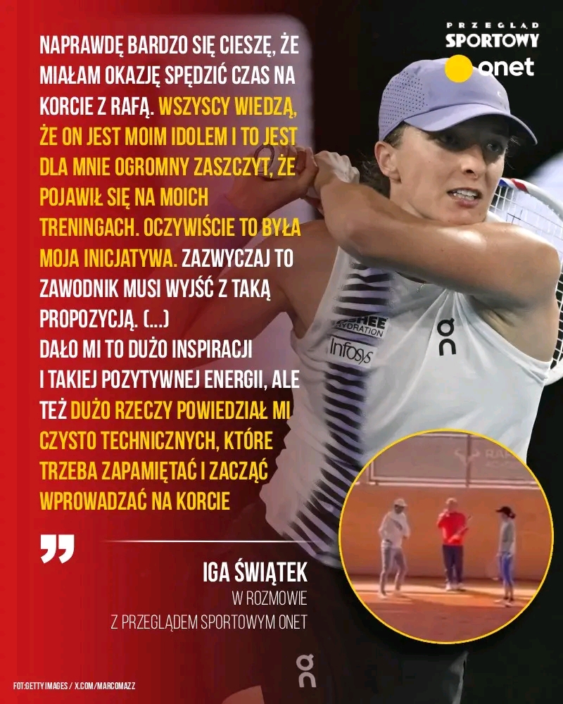 W środowisku WTA zawrzało, gdy media społecznościowe obiegły nagrania Polki trenującej na mączce pod okiem Francisco Roiga i samego Rafaela Nadala. Danielle Collins na antenie Tennis Channel uznała to za “przerażające” dla reszty stawki, a Jessica Pegula i Madison Keys w swoim podcaście żartowały wręcz, że takie połączenie sił powinno być nielegalne. Nam zdradziła kulisy rozpoczęcia współpracy ze zdobywcą 22 turniejów wielkoszlemowych ➡️