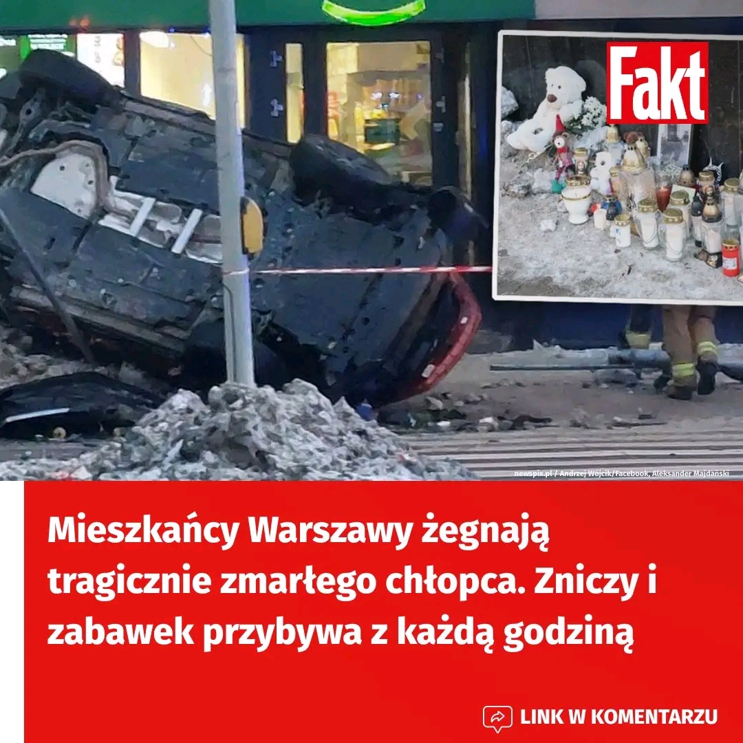 Dramatyczne sceny rozegrały się w poniedziałek, 19 stycznia, na skrzyżowaniu ulic Zamienieckiej i Grochowskiej w Warszawie. Samochód osobowy wjechał w grupę pieszych, wśród których znajdował się 6-letni chłopiec. Niestety, mimo wysiłków ratowników dziecka nie udało się uratować. Zdarzenie wstrząsnęło nie tylko mieszkańcami stolicy. Zaraz po wypadku w miejscu tragedii zaczęły pojawiać się znicze, których z godziny na godzinę przybywa. Przechodnie zostawiają też kwiaty i pluszowe zabawki. Ktoś z bliskich postawił też zdjęcie chłopczyka…
