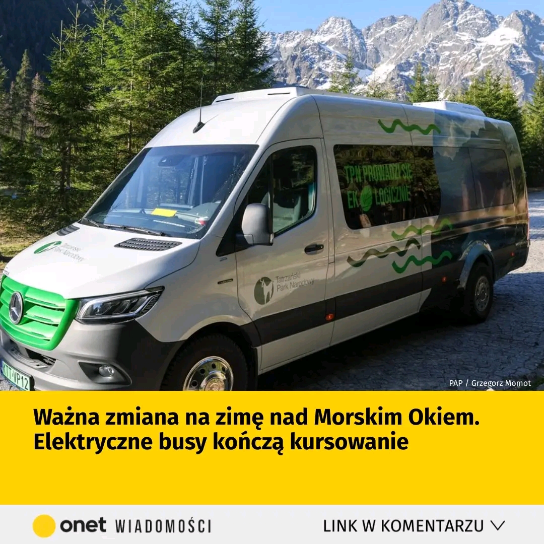 Elektryczne busy na trasie do Morskiego Oka w połowie listopada przestaną kursować na okres zimowy. Przerwę Tatrzański Park Narodowy (TPN) wykorzysta na przegląd techniczny pojazdów. W tym czasie na popularnym szlaku nadal będą kursować tradycyjne zaprzęgi konne, ale wozy zastąpią sanie.