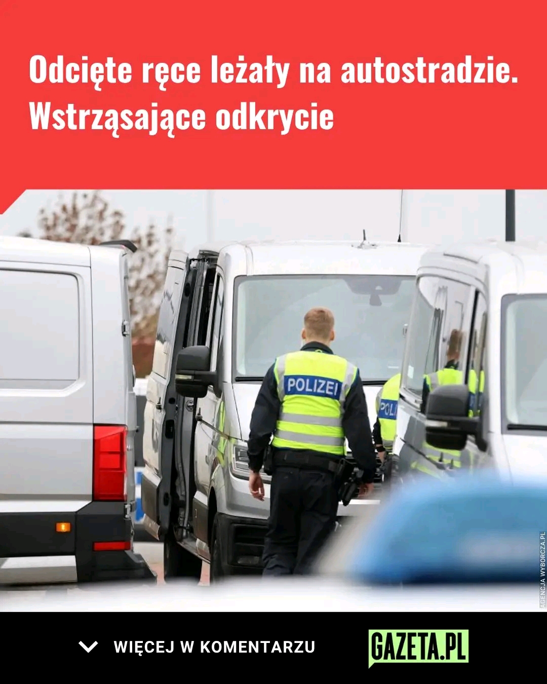 Odcięte ręce leżały na autostradzie. Wstrząsające odkrycie w Niemczech