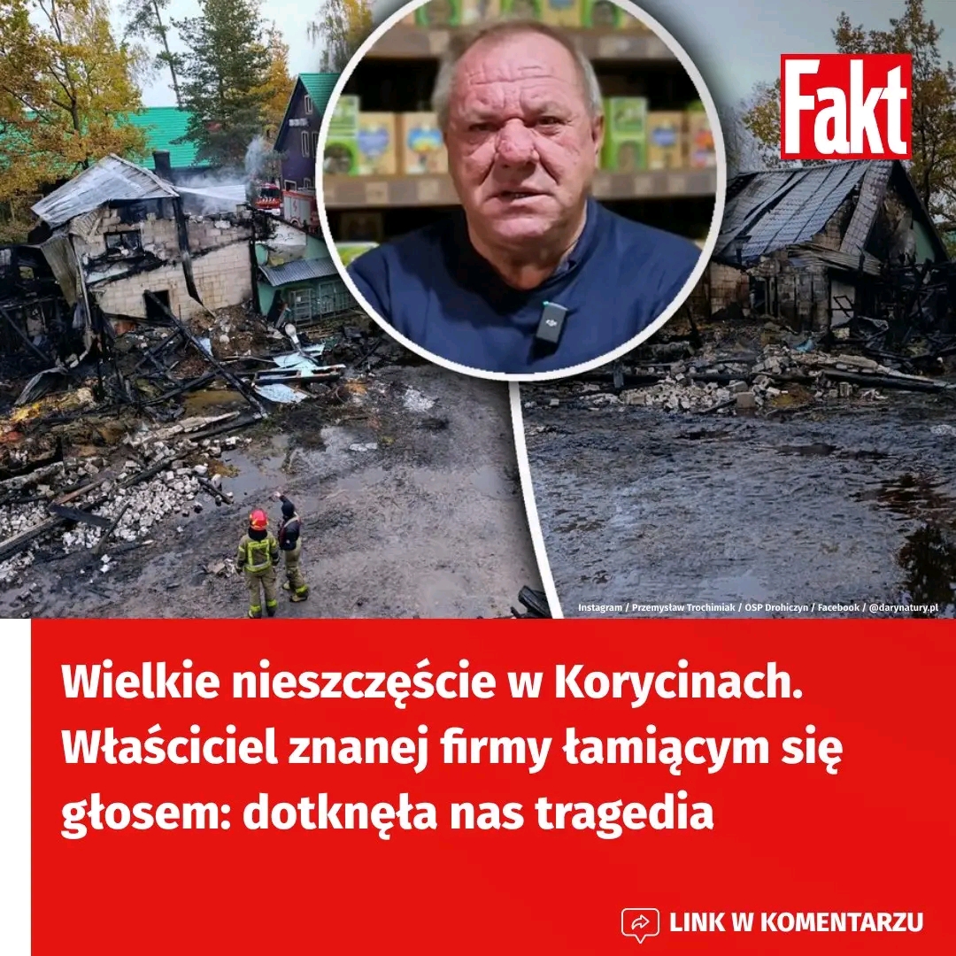 Dramatyczne sceny rozegrały się w nocy z piątku na sobotę, 25 października, w miejscowości Koryciny w pow. siemiatyckim (woj. podlaskie). Na terenie znanego w całej Polsce Podlaskiego Ogrodu Botanicznego – Ziołowego Zakątka wybuchł pożar, który w kilka chwil zamienił w zgliszcza magazyn połączony z częścią mieszkalną. W ogniu ucierpiała również firma Dary Natury. Jej właściciel zwrócił się do klientów z poruszającym apelem o wsparcie. Oświadczył, że żaden pracownik nie straci pracy.