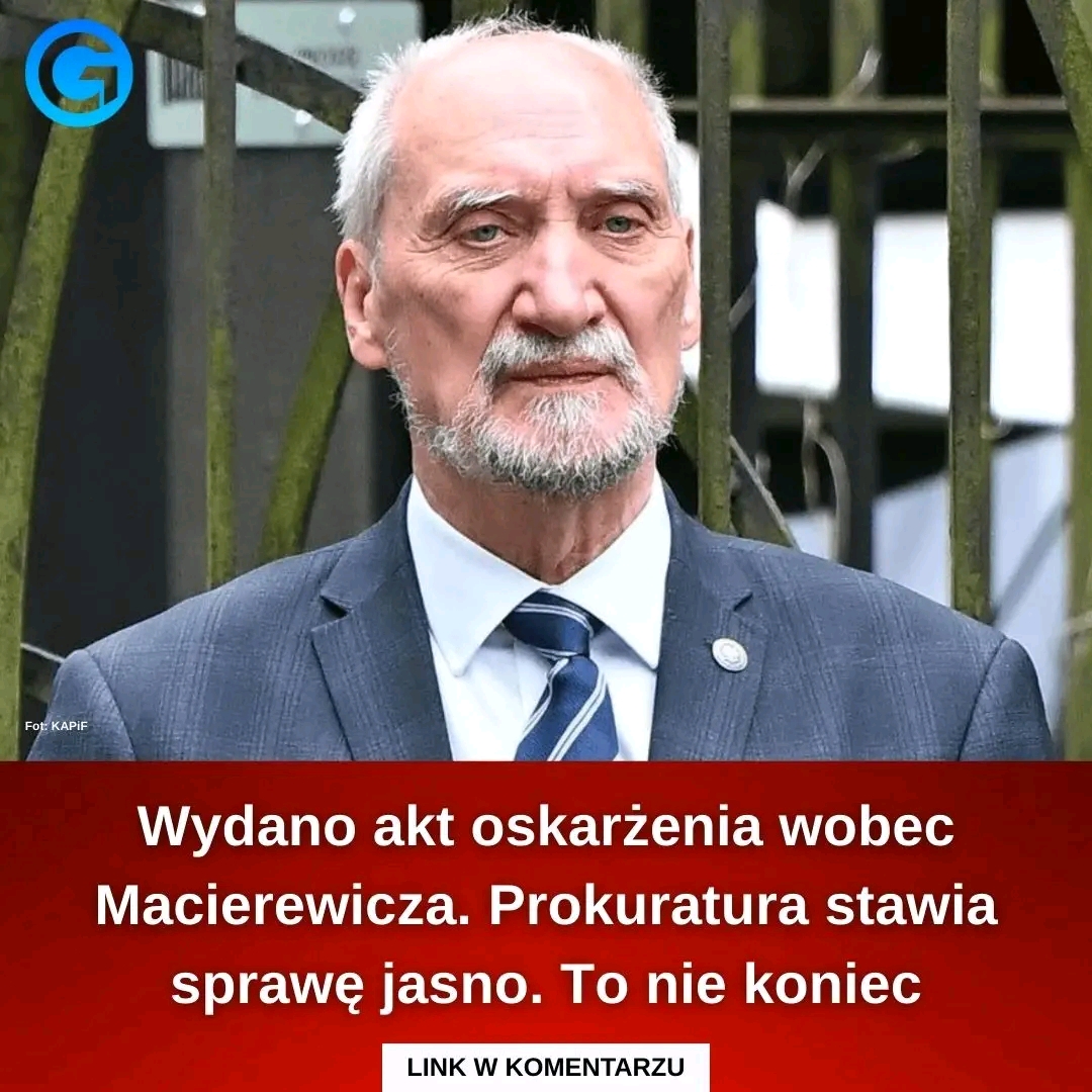 Rzecznik Prokuratury Krajowej Przemysław Nowak poinformował, że do sądu trafił akt oskarżenia przeciwko Antoniemu Macierewiczowi, byłemu szefowi Ministerstwa Obrony Narodowej oraz przewodniczącemu tzw. podkomisji smoleńskiej. Zarzuty dotyczą wielokrotnego ujawniania informacji niejawnych o różnych klauzulach tajności.
