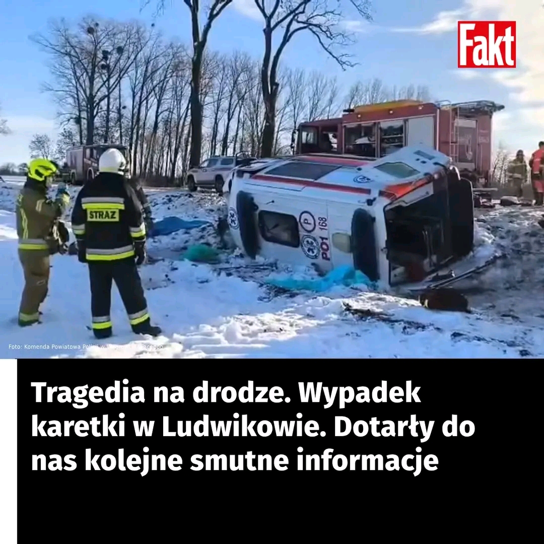 Dramat rozegrał się w czwartek 27 listopada przed godz. 10 na drodze wojewódzkiej nr 251 w pobliżu miejscowości Ludwikowo pod Wągrowcem. Karetka zjechała na pobocze i uderzyła w drzewo. Na jej pokładzie znajdowało się dwóch ratowników i dwie pacjentki. Kierowca ambulansu mimo reanimacji zmarł na miejscu. Wszystkie pozostałe osoby przetransportowano do szpitali. Jedna z poszkodowanych kobiet śmigłowcem LPR poleciała do Bydgoszczy, a pozostała dwójka karetkami trafiła do szpitala w Wągrowcu.