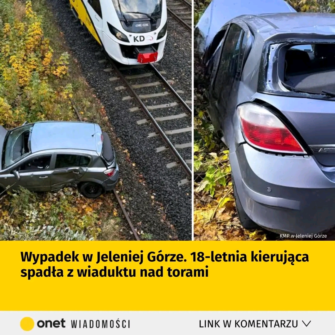 W Jeleniej Górze doszło do niebezpiecznego zdarzenia. 18-letnia kierująca samochodem straciła panowanie nad autem i spadła z wiaduktu nad torami. Na szczęście w tym czasie w pobliżu nie przejeżdżał żaden pociąg.