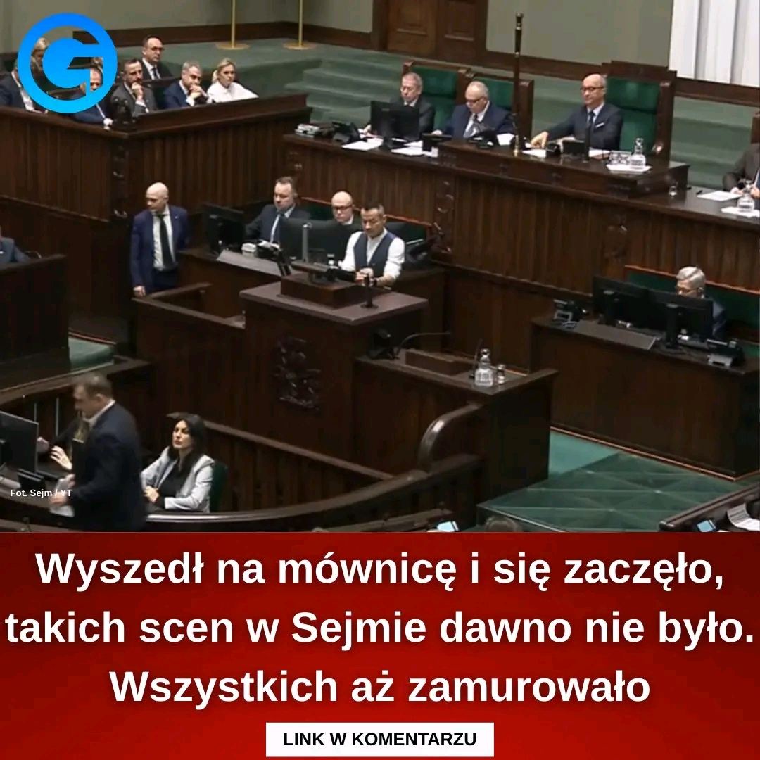 Po tych słowach poseł przez około minutę stał na mównicy w całkowitym milczeniu, patrząc w stronę ław Prawa i Sprawiedliwości. Nie kontynuował wypowiedzi, nie dodawał argumentów ani komentarzy. Na sali zapanowało wyraźne zakłopotanie, a nietypowa scena natychmiast przyciągnęła uwagę zarówno posłów, jak i widzów śledzących obrady.