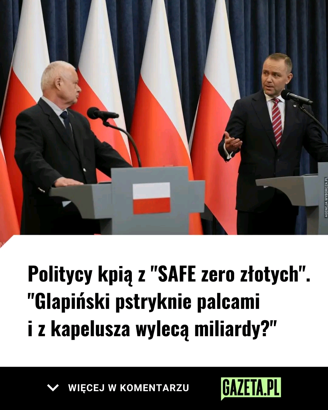 SAFE 0 procent” skomentował także minister finansów. “Żadnych pieniędzy w SAFE 0 nie ma. Zero złotych. Nie ma również żadnych gwarancji zysku z NBP. Jest za to pomysł zadłużenia BGK, powołania specjalnych Rad i Komitetów. Genialne. Prawdziwy SAFE na 44 miliardy euro wciąż czeka na podpis prezydenta” – napisał na portalu X Andrzej Domański.