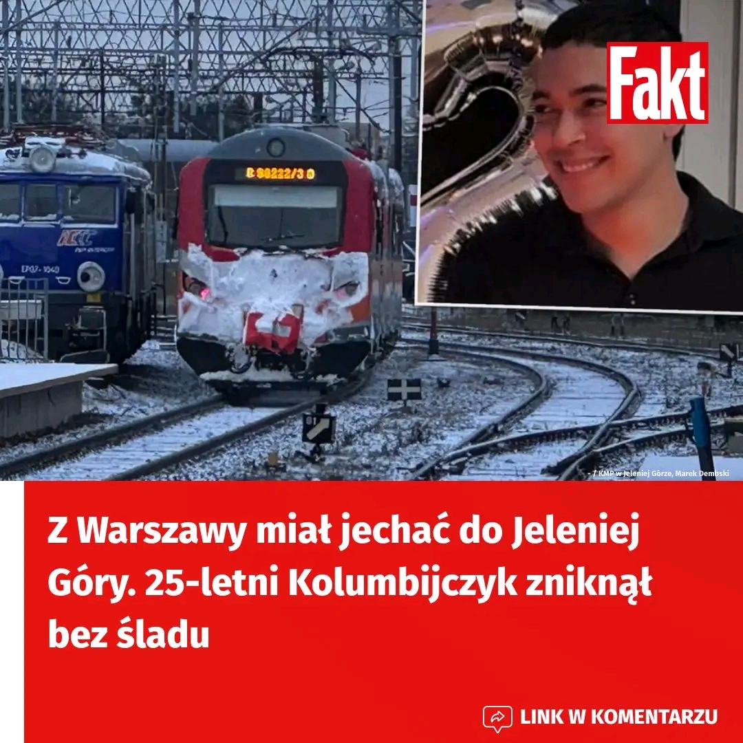 Dramatyczne chwile przeżywają bliscy młodego Kolumbijczyka, który zaginął bez śladu po tym, jak pojechał do Warszawy. 25-letni Calilo Andreas Navarro Pereira miał spotkać się ze znajomym i wrócić tego samego dnia do Jeleniej Góry. Jeszcze około godz. 21.30 rozmawiał z partnerką i informował o planowanym odjeździe pociągu. Potem słuch o nim zaginął. Policja apeluje o pomoc w poszukiwaniach mężczyzny.