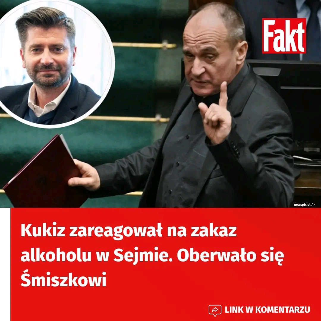Kukiz zareagował na zakaz alkoholu w Sejmie. Oberwało się Śmiszkowi