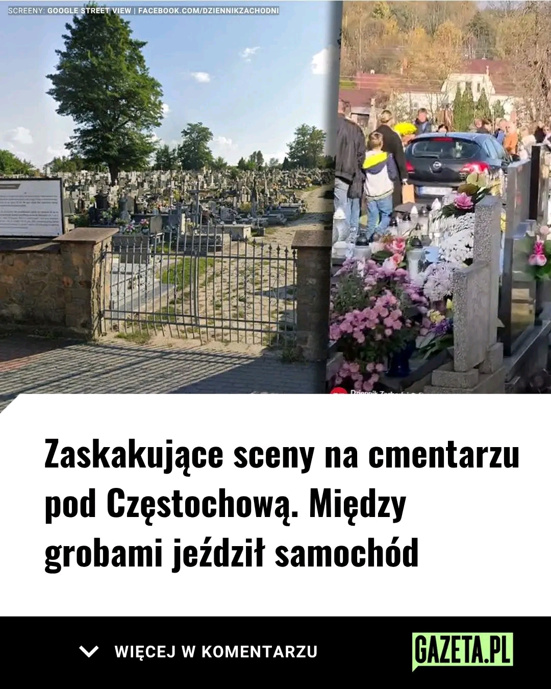 W sobotę 1 listopada osoby, które odwiedzały cmentarz w Mstowie w powiecie częstochowskim, w województwie śląskim, musiały zmierzyć się z niecodzienną przeszkodą. W jedną z cmentarnych alei wjechał osobowy opel. Kierująca samochodem jechała pomiędzy grobami ścieżką przeznaczoną wyłącznie dla pieszych. Na nagraniu i zdjęciach, które opublikował “Dziennik Zachodni”, widać, że auto ledwie mieściło się pomiędzy pomnikami i ustawionymi obok nich ławkami. Ludzie omijali je. – Nie mogę w to uwierzyć – mówiła jedna z osób, którą cytuje dziennik. Z nieoficjalnych ustaleń dziennikarzy wynika, że kobieta wjechała samochodem na cmentarz na polecenie duchownego. Kilka osób, które miały być świadkami zdarzenia, twierdzi, że ksiądz jechał na tylnym siedzeniu auta.