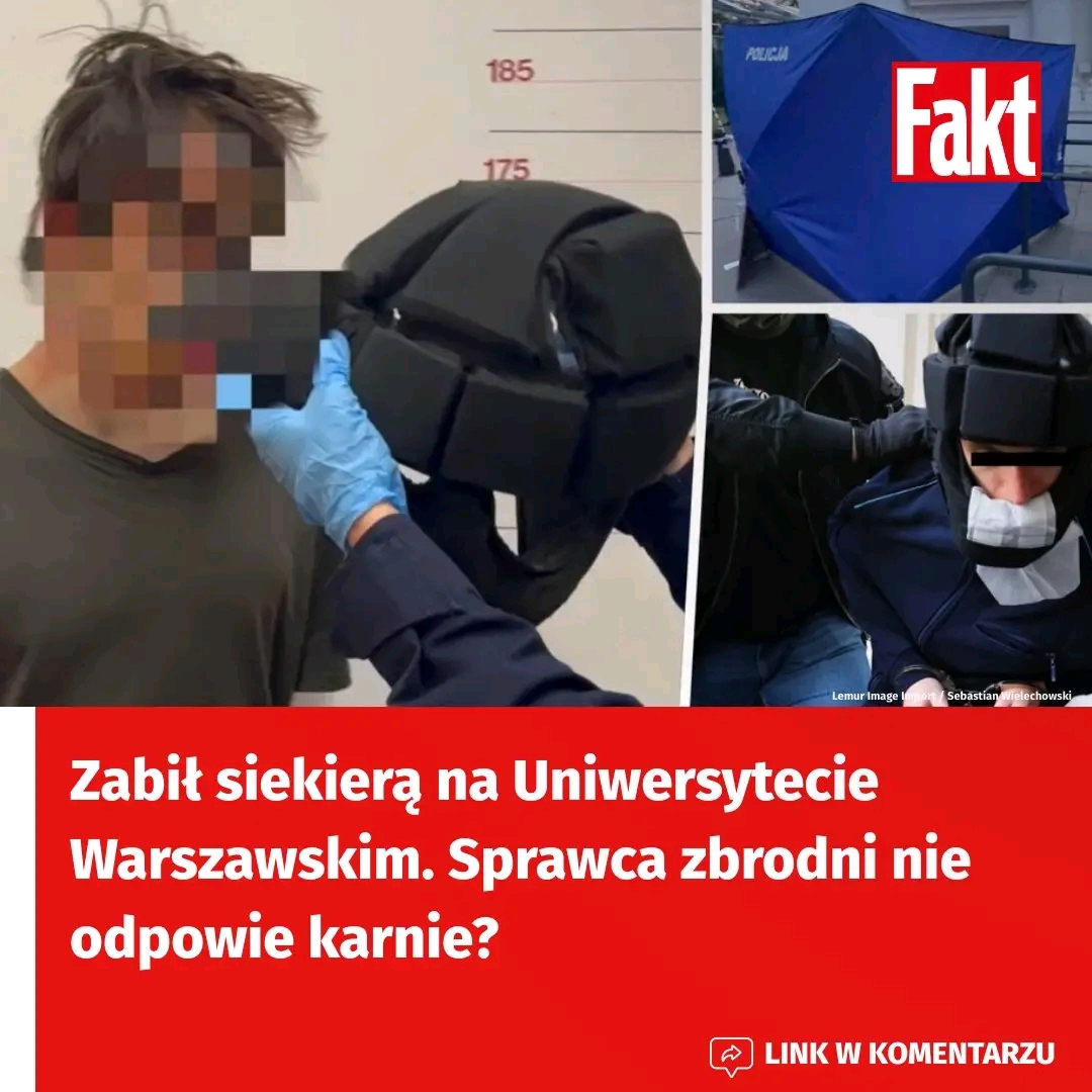 Chodzi o zdarzenie z maja 2025 r., gdy student Wydziału Prawa zaatakował siekierą portierkę uczelni. Dokument sporządzony po badaniach psychiatrycznych określa stan psychiczny sprawcy oraz wskazuje dalszy tryb postępowania wobec niego. O decyzji Prokuratury Krajowej jako pierwsze informowało radio RMF FM.