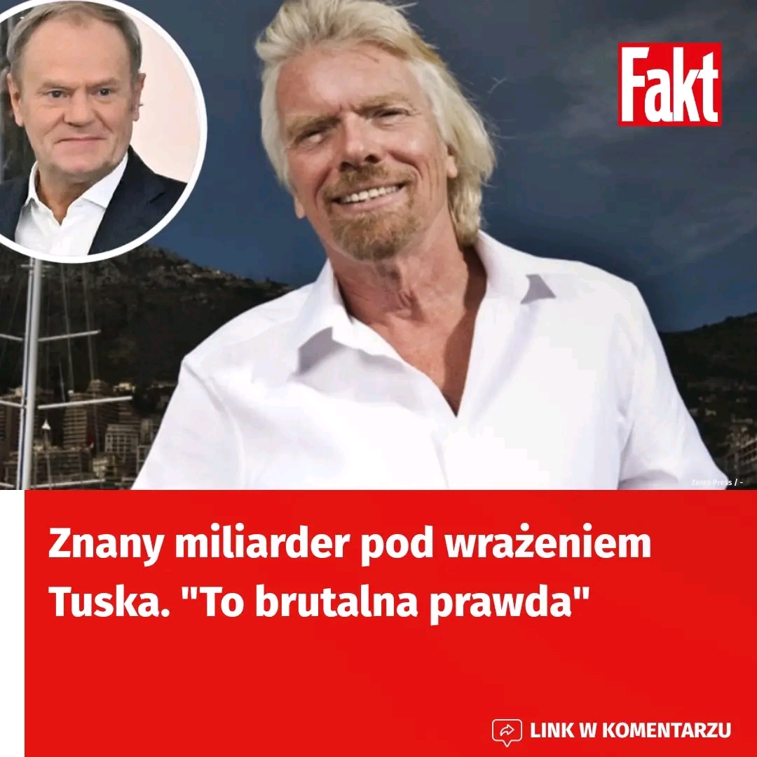 Richard Branson, brytyjski miliarder i założyciel globalnego holdingu Virgin Group, zareagował w mediach społecznościowych na wywiad premiera Donalda Tuska, opublikowany przez dziennik “The Times”. “Mocny wywiad z premierem Polski, Donaldem Tuskiem” — czytamy na profilu Bransona.