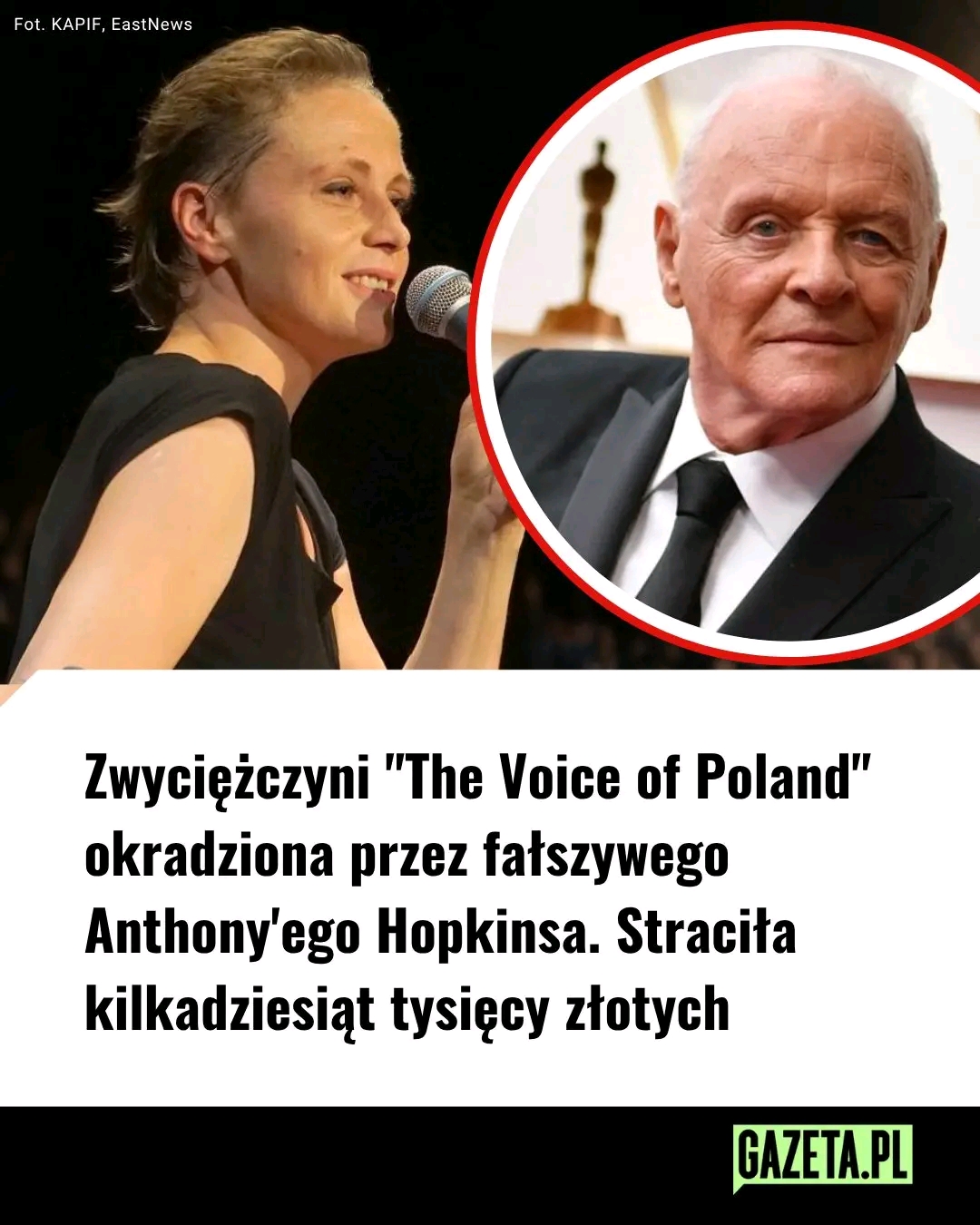 Natalia Sikora zwyciężyła w drugiej edycji “The Voice of Poland” i od tego czasu rozwija karierę muzyczną. Okazuje się, że i ona ma na koncie epizod związany z oszustwem internetowym. Piosenkarka zawitała do “Dzień Dobry TVN” i opowiedziała o sytuacji, która miała miejsce w 2021 roku. Sikora była niezwykle poruszona tym, że Anthony Hopkins otrzymał Oscara za rolę w “Ojcu”, czym podzieliła się w mediach społecznościowych. To wykorzystał oszust. Wokalistka otrzymała wiadomość od rzekomej sekretarki aktora. Później dwukrotnie miała rozmawiać z “Hopkinsem”. – Dwa razy rozmawialiśmy przez telefon. To był podrobiony głos. Na moje muzyczne ucho dałam się na to nabrać – przyznała. Doszło nawet do rozmowy z “producentem muzycznym”, który zaproponował Sikorze nagranie płyty w Stanach Zjednoczonych.